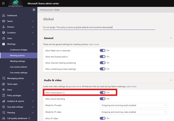 Transcription is off by default in the Global Meeting Policy and so your users will not see the feature unless you enable it.
