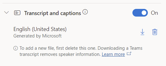 Video settings enables the automatic generation of a video transcript or upload, if one has already been generated, as well as the creation of chapters in the video and toggle to turn on/off the About video section.