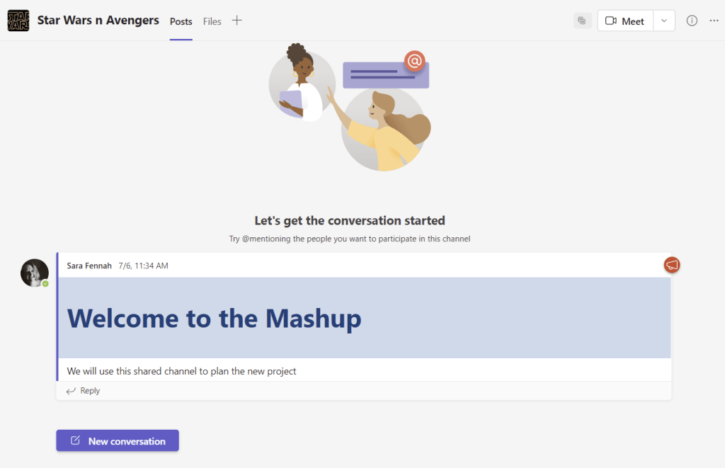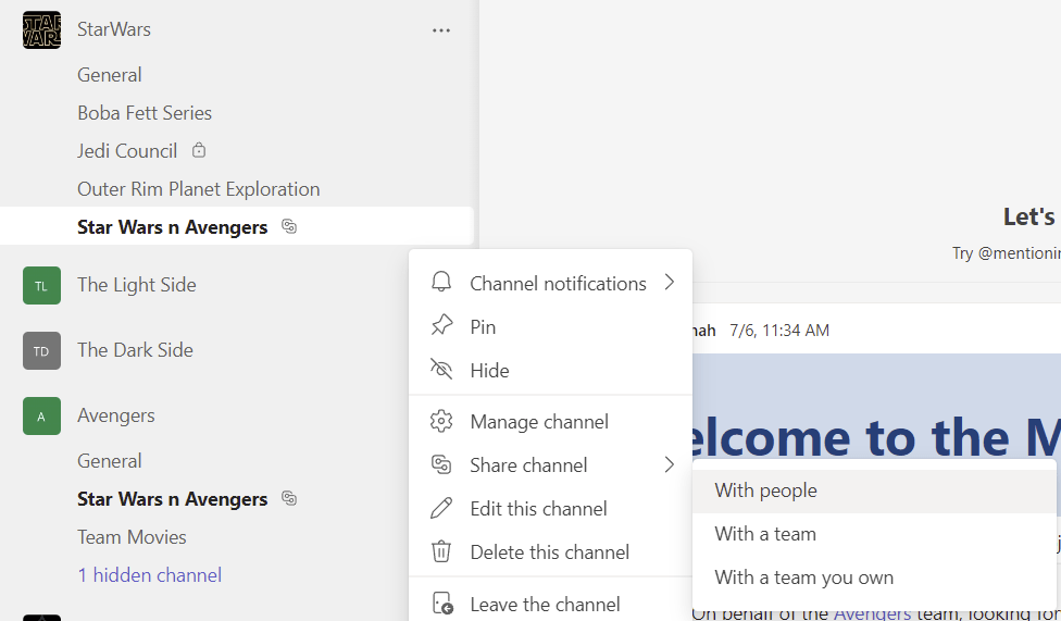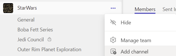 The members of the Star Wars team, can now use the channel from their team as with any other channel in the team.