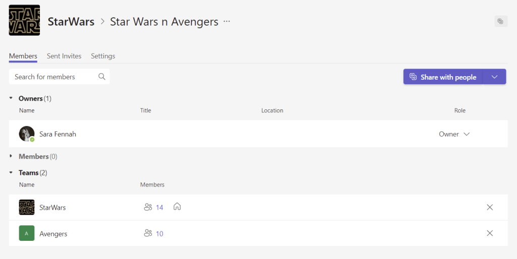 In this scenario, we are the owners of the Star Wars team. In the same organization we have an Avengers team and the two teams want to work together on a joint project. We are the team leader and owner of both teams, so can do all the steps ourself.