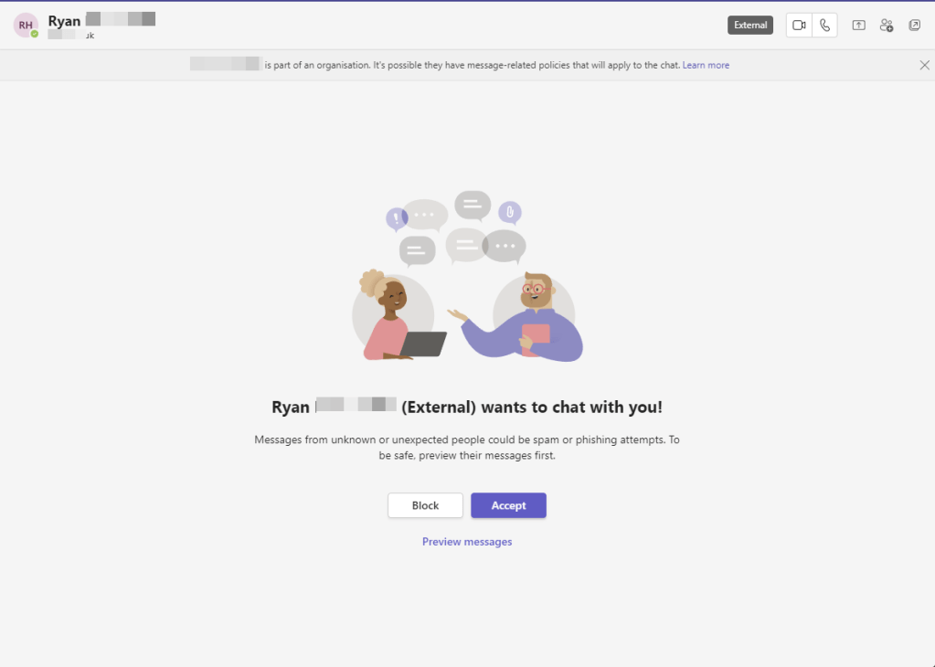 Spam and Phishing messages in Microsoft Teams are an unfortunate reality. Just like unwanted email, once your contact details are proven more tend to arrive everyday. Thankfully this feature will help. At the time of writing (January 2023) confirmation for new message from user of Teams from a personal account (i.e. not managed by an organisation) have had this acceptance feature, but not this is rolling out for messages from users of work & school accounts too.