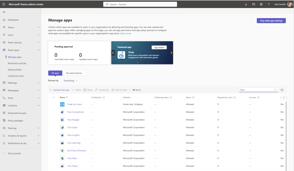 If you wish to use the Teams app, ensure it is enabled for your users, via the Teams Admin Center. This is the same process as for other Teams apps, however there is an article on Microsoft Learn to guide you through the process: see Manage, install, and pin Viva Pulse in the Teams admin center