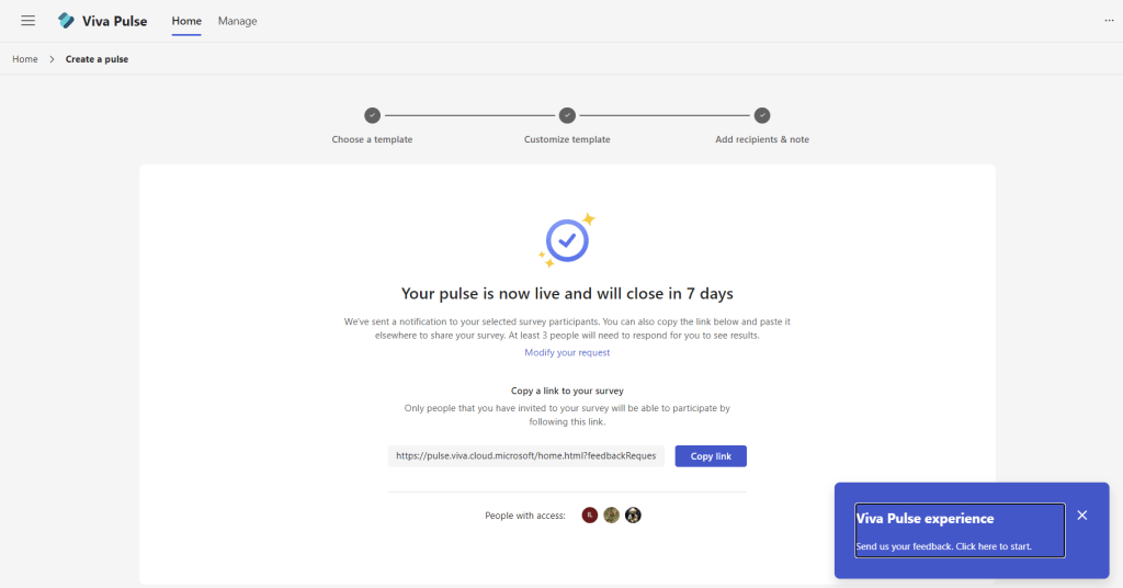 Viva Pulse public preview is available as announced on the Microsoft Viva Blog.
