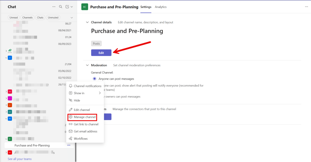 To change the view of an existing channel, navigate to Manage channel for the individual channel and click Edit button.
