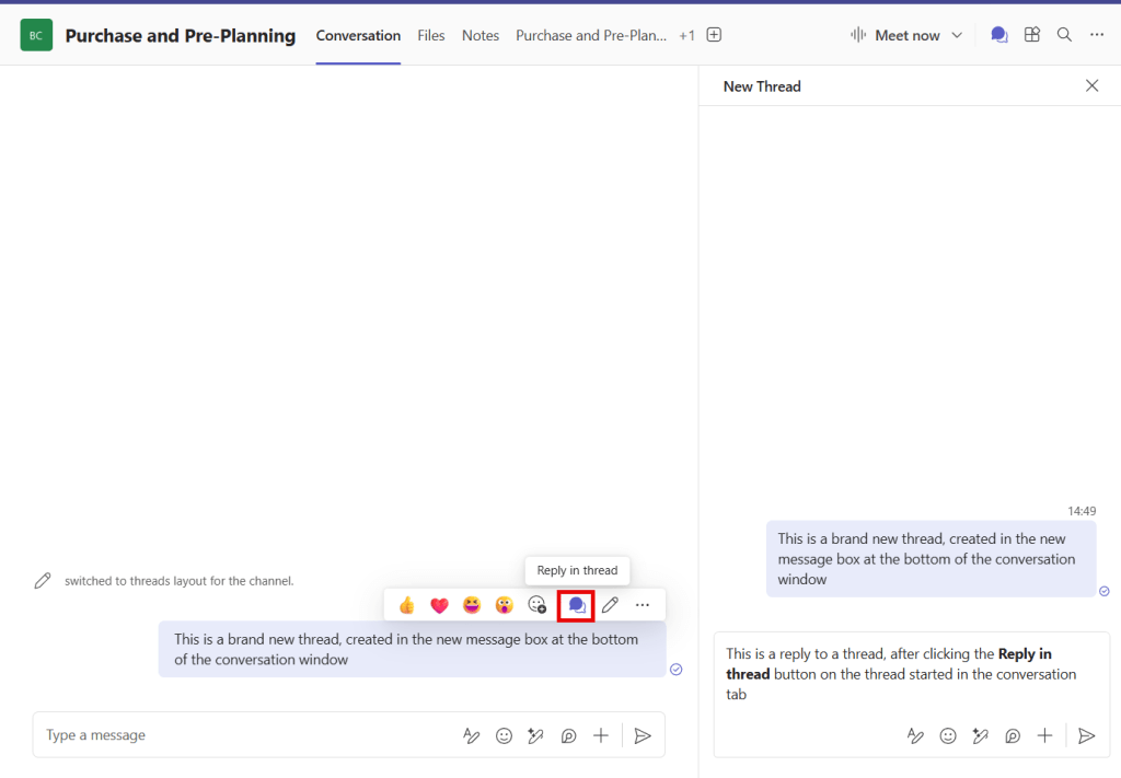 Create a new thread by typing a new message