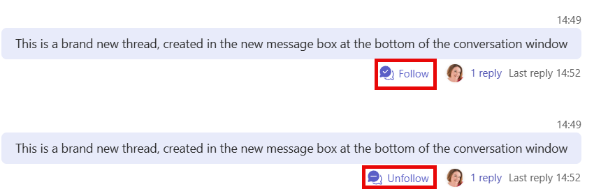 When you reply to a thread you are automatically following it. Whilst viewing a single thread in the side pane you can use the … menu to unfollow the thread, amoungst other actions.